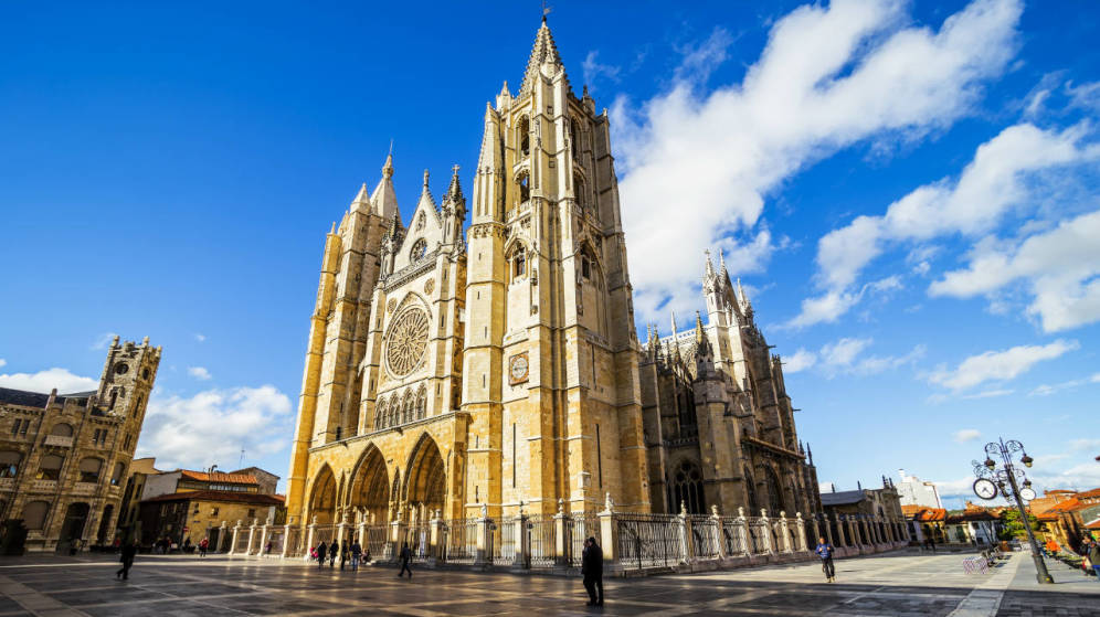 León conquista a sus visitantes a través de la vista y el paladar. Además de ser una de las cunas más reconocidas de la exquisita cecina, esta ciudad acoge en su callejero una de las catedrales góticas más importantes de España. Los afortunados que se animen a conocerla podrán fotografiar sus asimétricas torres —una mide 65 metros; la otra, 68— mientras un guía experto le acompaña por un recorrido a través del mapa leonés. Aunque la entrada a este templo se reserva para cuando el turista tenga tiempo de acceder a ella por su cuenta, existen rutas programadas que le ayudarán a conocer los secretos de esta urbe.